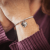 The Stretchy Heart Bracelet includes up to two lines of engraving on the backside of the charm for a personal, heartfelt message.